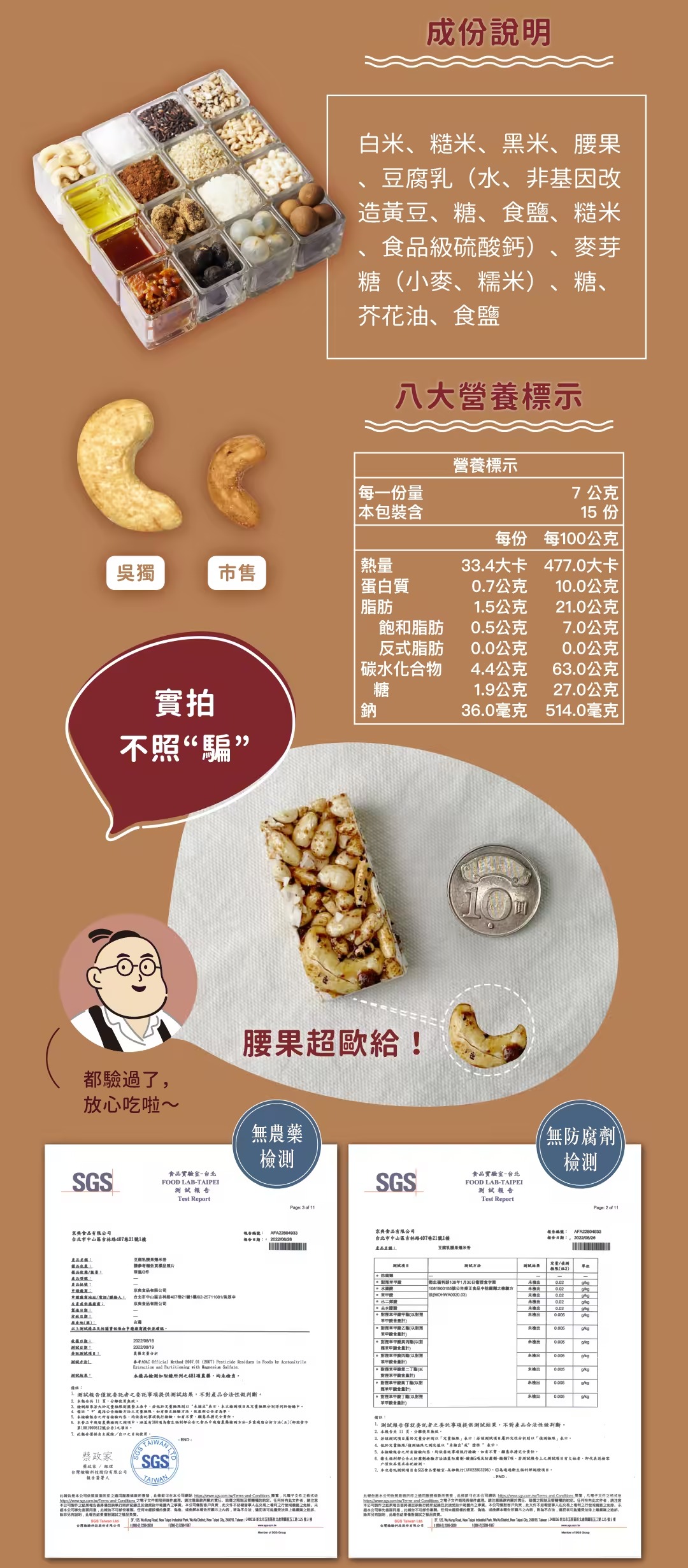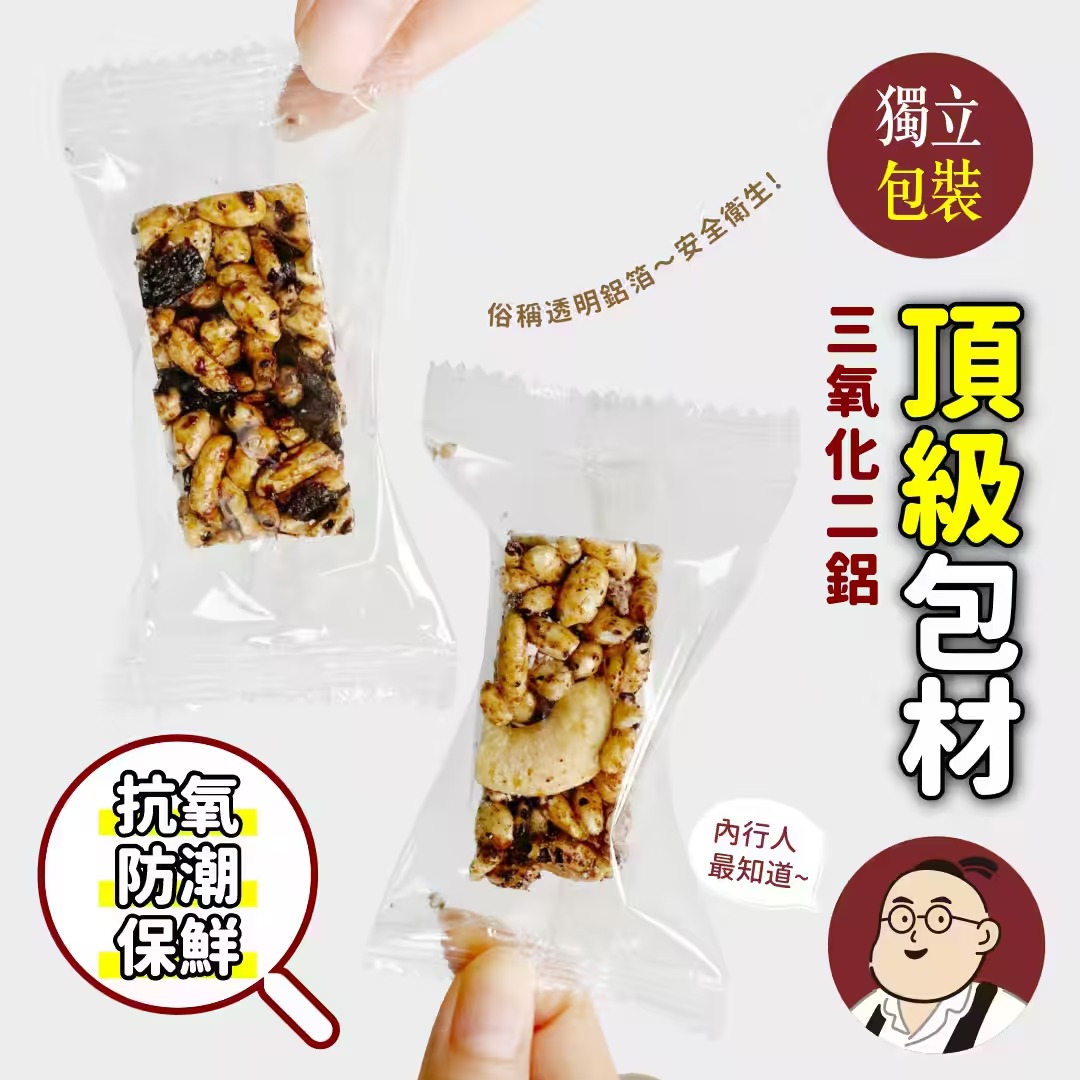 多入優惠!吳獨食 干爆米香 (純素) 15入/袋 (共100克) (黑糖龍眼、豆腐乳腰果兩種口味任選)