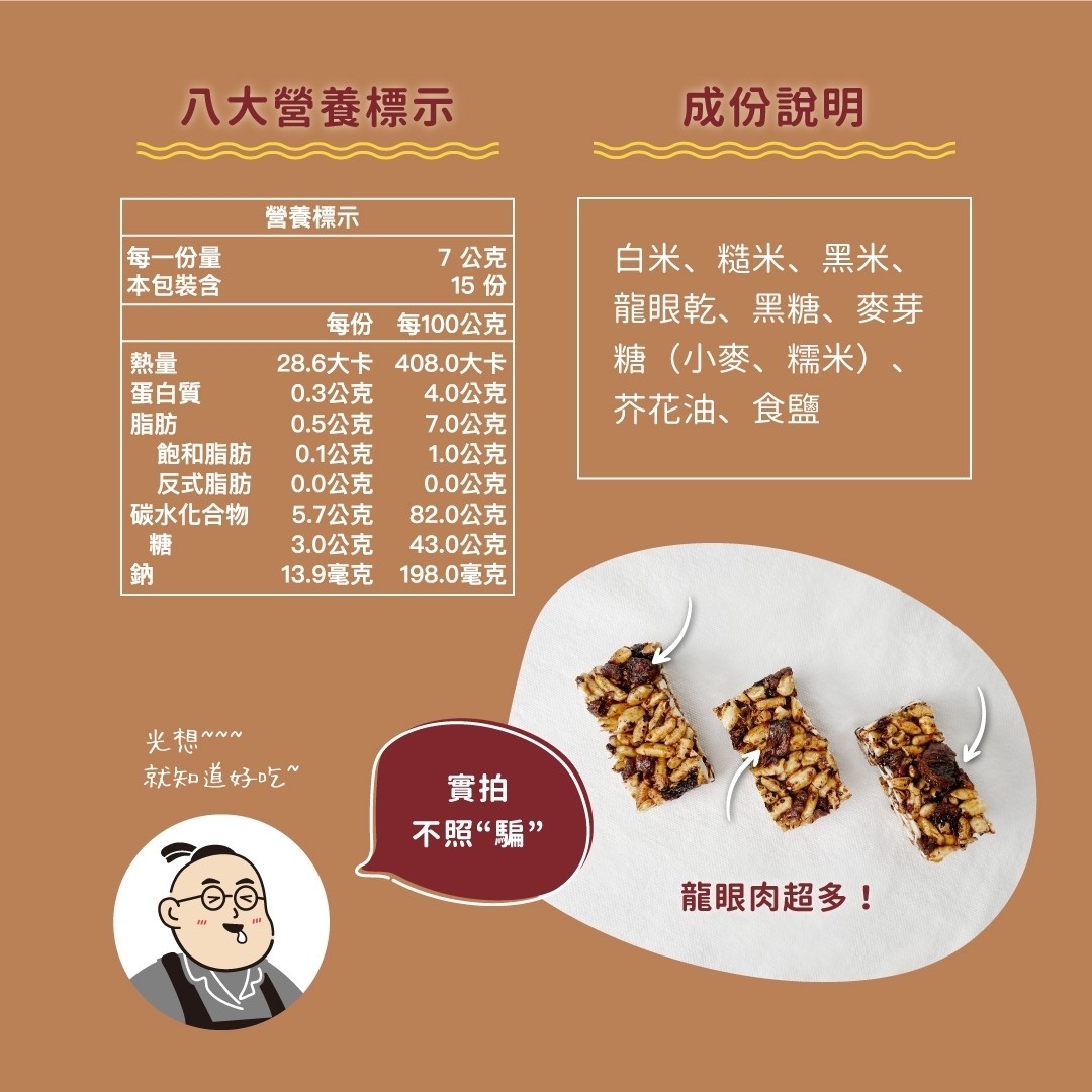 吳獨食 黑糖龍眼干爆米香 (純素) 15入/袋 (共100克)